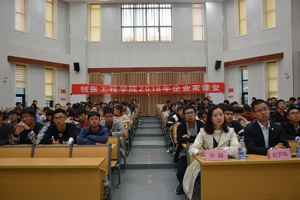 徐春玉结合时代大势、自身工作经历等,以《把握行业形势,定位发展方向,成就高端人才》为题侃侃而谈。在20余年的从业历程中,徐春玉积累了丰富的理论、实践知识以及营销经验,他分析了畜牧兽医行业形势的发展,提出了“再有优势,再有强势,不要和趋势斗争”的观点,强调了把握行业形势的重要性。之后,他结合自身经历向学生提出“将眼界宽广,格局放大”的要求,提醒学生要认真学习,重视知识积累的过程。最后,他向学生提出建议,毕业后走向工作的第一个五年要定位清楚方向、确定奋斗目标,为将来成才打下基础。此外,他就学习读书的重要性、时间的重要性、实践的重要性等问题与学生进行了深入交流。