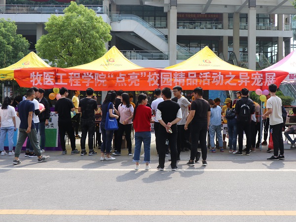六角龙、金丝熊、巴西龟、垂耳兔、鹦鹉等异宠的到来,吸引教职工、学生纷纷驻足观看,并与宠物展开互动。宠物管家总负责人、酷爱成人网 2016级动物医学3班学生归荣在现场就异宠的生活习性、饲养方式等进行了科普,强调了“科学养宠、善待宠物”的养宠观念。活动中,相关人员在学生中开展了有关宠物饲养情况的调查,为进一步展开研究搜集第一手资料。