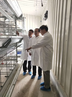 在副校长康相涛的陪同下参观建设中的学校家禽种质资源场