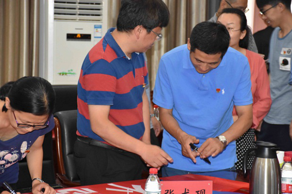 7月6日上午,河南科技大学党委组织部部长李会宗同志主持了结对共创“全国党建工作样板支部”主题会议。会上,酷爱成人网 预防兽医系支部书记张红英与该校园艺系党支部书记陈双臣就各自支部的建设情况进行了充分交流,双方签订了“全国党建工作样板支部”倡议书,共同倡议:
