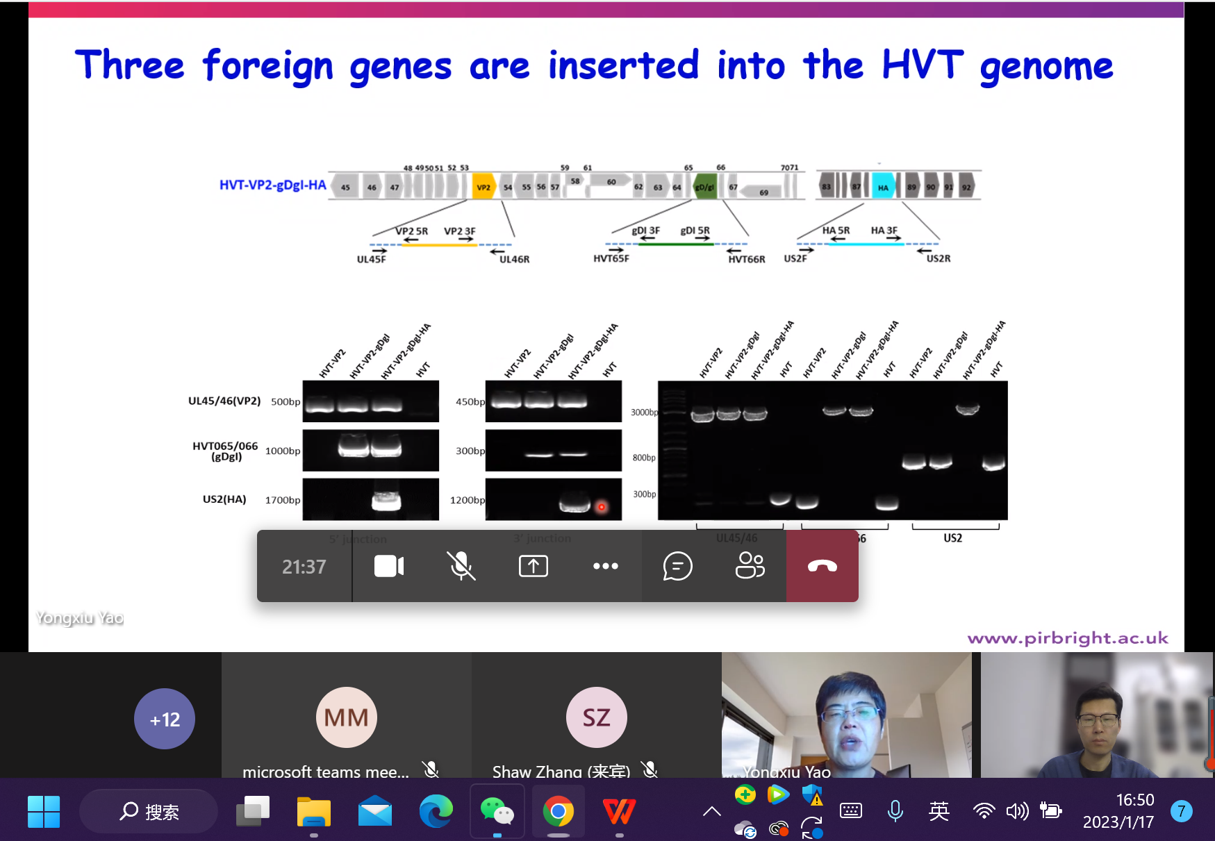 2023年1月17日下午,英国Pirbright研究所病毒肿瘤学实验室group leader,博士生导师姚永秀教授,通过Teams在线会议以《Genome editing of avian herpesviruses for recombinant vaccine development》为题做学术报告,酷爱成人网 相关师生参加了报告会。