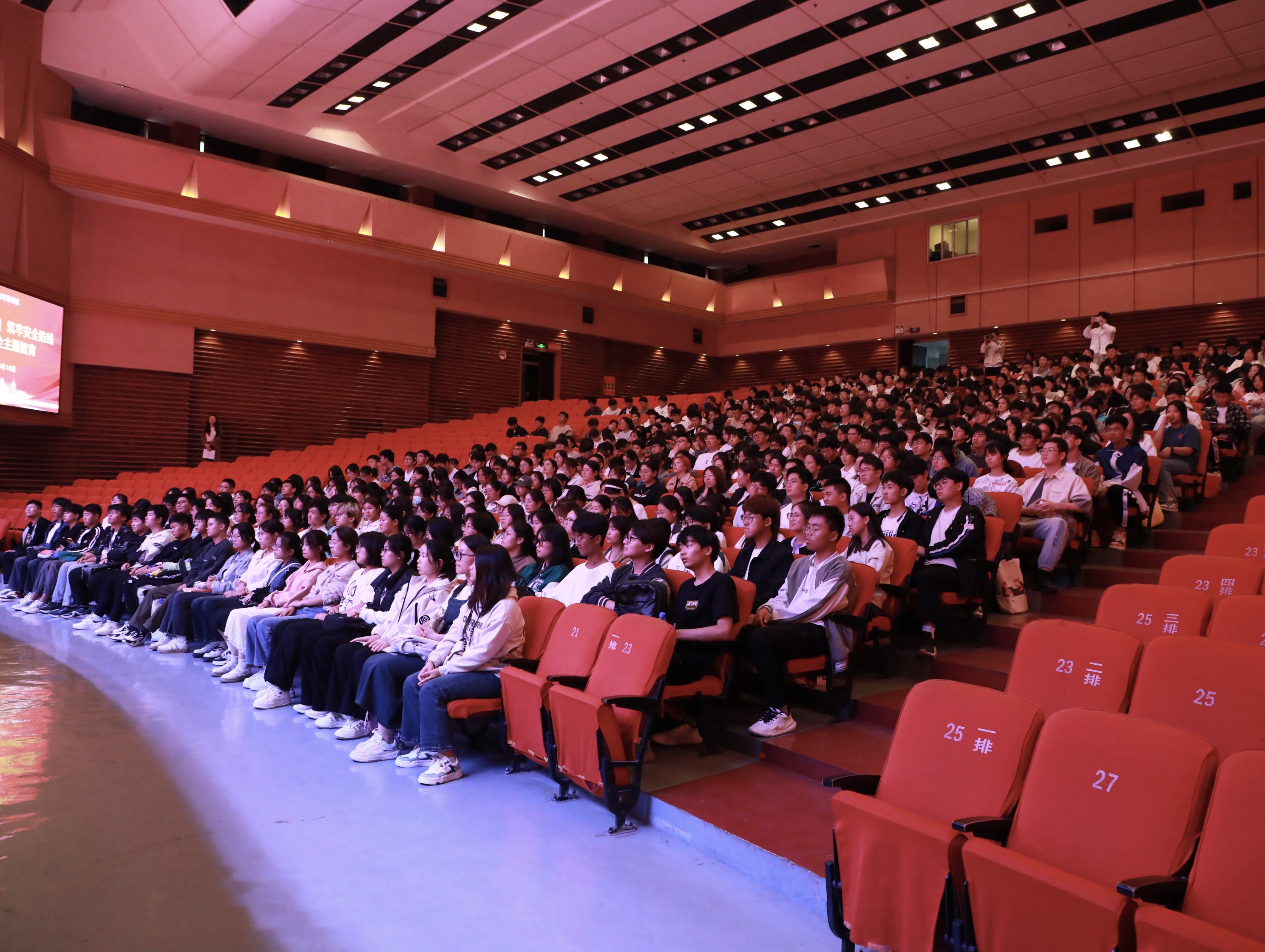 王德胜从国家安全,网络安全,交通安全,消防安全,财产安全等角度,从学生生活实际出发,以真实案例进行分析,呼吁广大学子,国家安全无小事,青年更应从自身角度做起,防范威胁国家安全的行为。他强调交通事故是概率性的事情,不能抱有侥幸心理,交通安全一定要严格对待。同时要提升消防意识,他倡议,不在宿舍使用违规电器,用电时检查好插头插座以及电器,当宿舍起火时应迅速拨打火警电话“119”等。他教育大家不要盲信盲从,切勿贪小便宜,守护好自身财产安全。王德胜的讲述专业又不失幽默,严谨又充满活力,现场同学们受益匪浅。