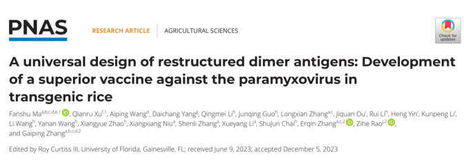 据悉,目前该疫苗已经于2023年8月与河南牧翔集团签约合作转让,此次转让实现了科技创新与产业发展的双向赋能,对于疫苗开发具有重大意义。(文/张二芹)