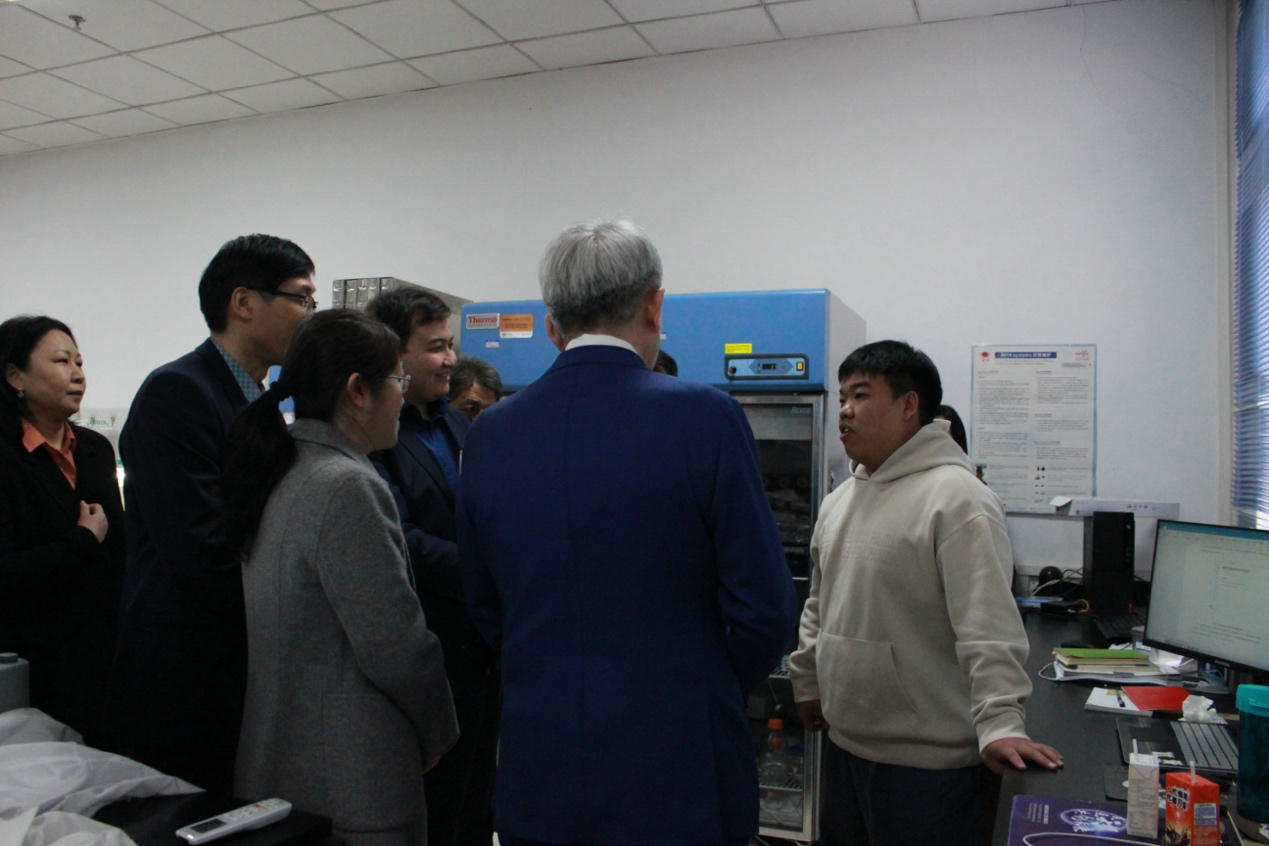 3月22日上午,哈萨克斯坦国立农业研究大学第一副校长易卜拉欣莫夫·普利姆库尔(IBRAGIMOV PRIMKUL)教授、生物安全系艾哈迈特萨迪科夫·努尔兰(AKHMETSADYKOV NURLAN)教授、生物安全系扎纳特·巴塔诺娃(ZHANAT BATANOVA)副教授、全球开发部阿卜杜拉马诺夫·阿布扎尔(ABDRAMANOV ABZAL)主任一行4人到访酷爱成人网。在酷爱成人网党委书记廖仲磊、院长张龙现教授等陪同下,哈萨克斯坦国立农业研究大学代表团参观了龙湖实验室和酷爱成人网