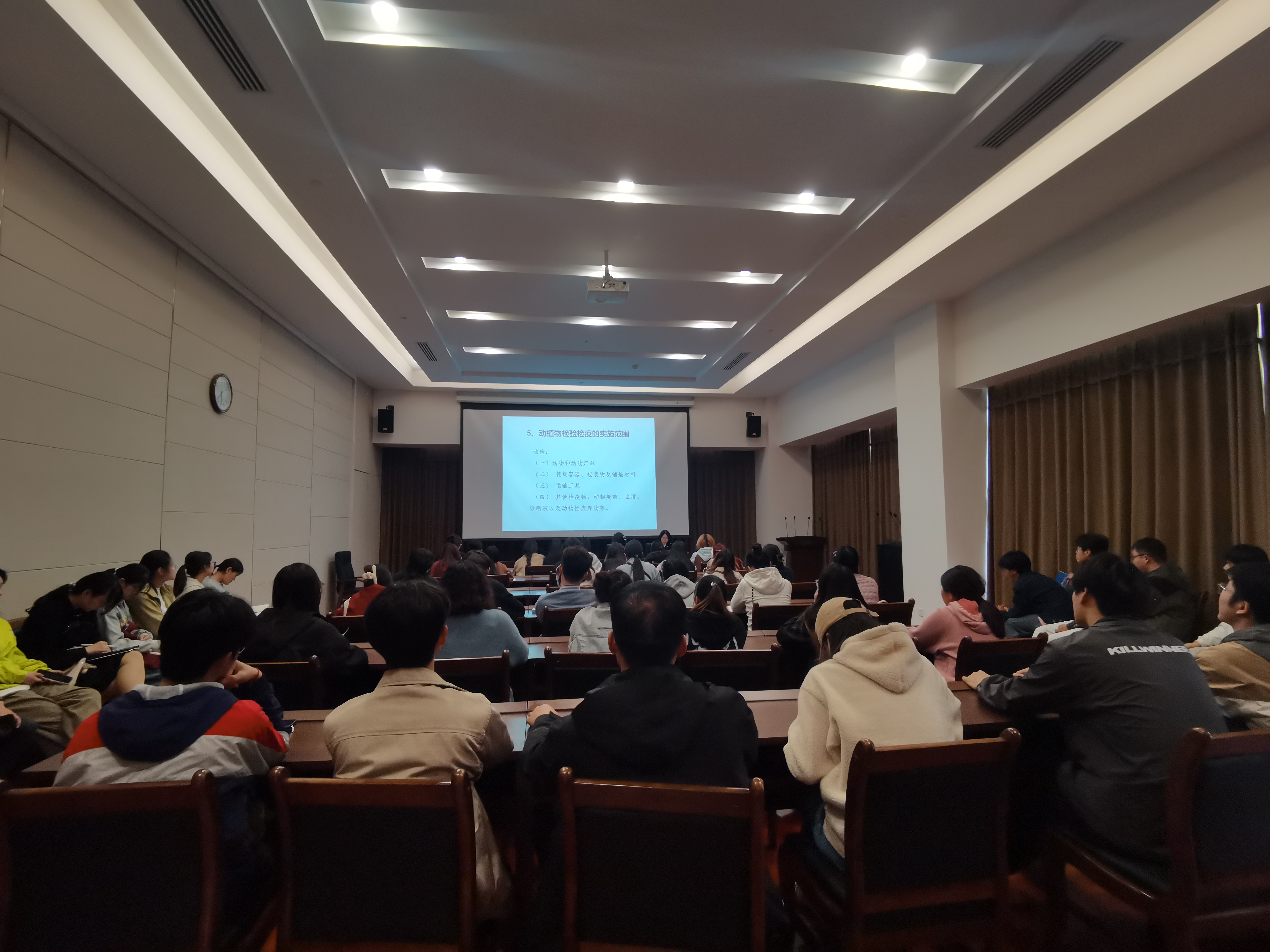 抵达郑州海关技术中心后,同学们首先参观“海关队伍授衔20周年书画展”,对海关制度的建立有了初步的了解。随后在二楼会议室听取了海关知识讲座,讲座由郑州海关技术中心正高级兽医师苗丽担任主讲,苗老师从境外出口隔离场认可、检疫审批、国外预检、现场检疫、隔离检疫、实验室检验、检疫处理、鉴证放行、动植物检疫特性等九个方面,将郑州海关技术中心的主要工作内容和场景进行了详细展示,进一步加深了同学们对海关的认识。