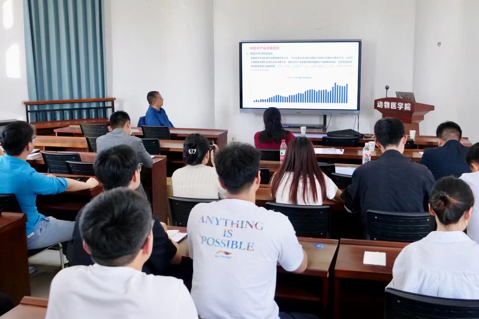 徐泽君就产业发展对在校学生的启示和师生们进行交流。他鼓励同学们扎实学习专业基础课、专业课,尤其是养羊系列课,多向老师专家请教,多参加实习,从学习阶段就专注于养羊,毕业十年后,定能成为名震一方的养羊技术专家。