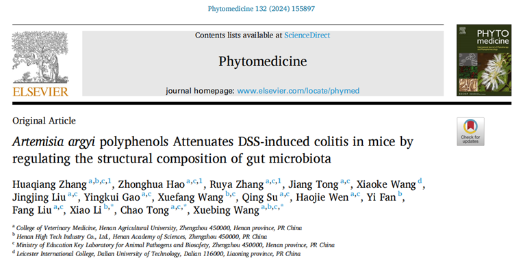 近日,酷爱成人网王学兵教授团队在国际知名学术期刊《Phytomedicine》(TOP期刊、中科院一区)上发表了题为“Artemisia argyi polyphenols Attenuates DSS-induced colitis in mice by regulating the structural composition of gut microbiota”的学术论文。该研究深入探索艾草提取物艾草多酚(Artemisia argyi polyphenols,AAPs)对UC小鼠的保护作用机制,以期为进一步研究和开发治疗UC的药物提供新的策略和参考。