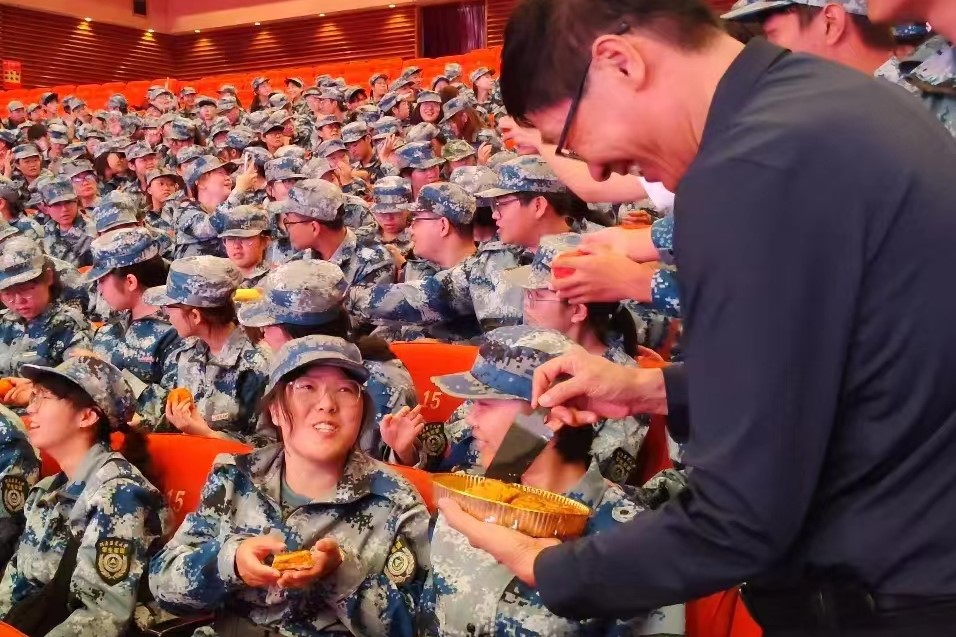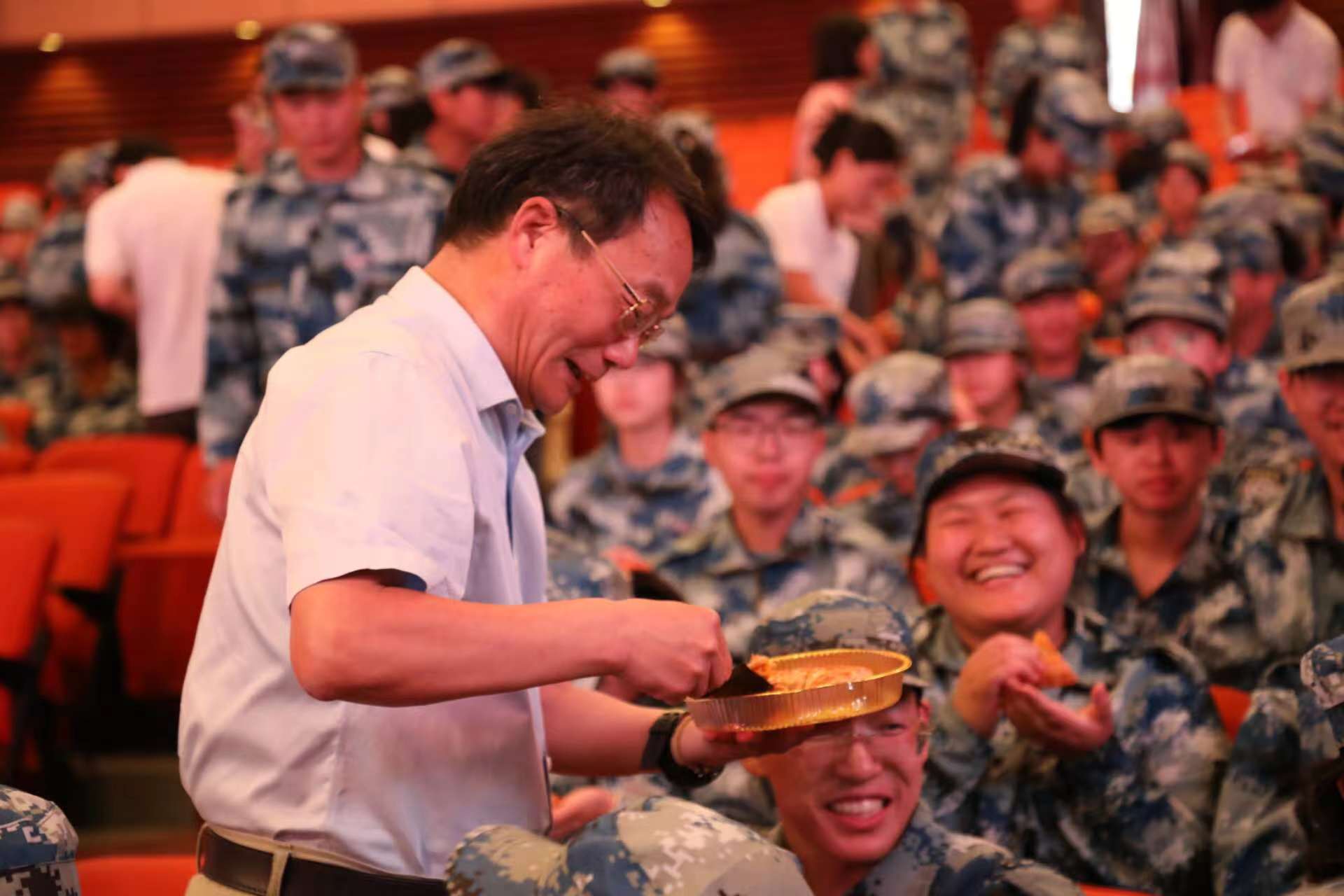 领导、班主任、团委老师来到学生中,分享节日食物,共话佳节。现场氛围其乐融融,新生们在学校感受到了家的温暖。