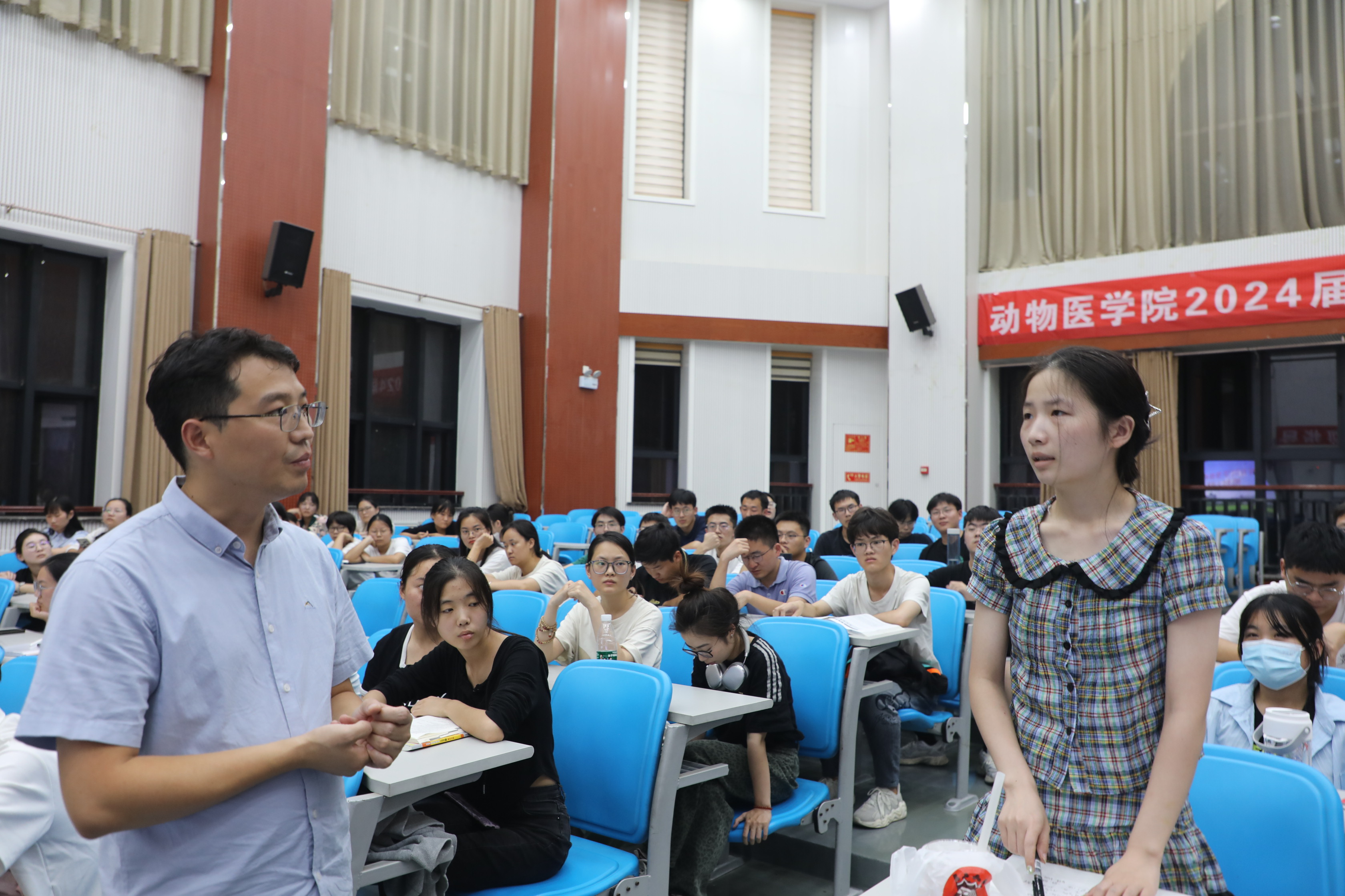 在龙子湖校区繁塔楼C区大教室四召开2024届毕业生考研指导会。院党委副书记杜家方、预防兽医系党支部书记、系主任李永涛、院团委书记张心晨、院团委副书记冯佟出席会议,全体2024届学生参加会议。