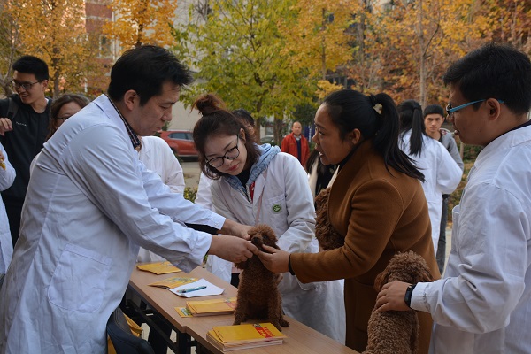 临床兽医系教工党支部在支部书记贺秀媛的带领下,和学院小动物协会主要成员一起走进农大社区,开展“宠物义诊”志愿服务活动。该支部党员董海聚、黄淑成、童超和院党委组织员来卓一起参加了活动。