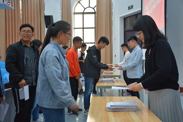 在繁塔楼大教室2举行2018级新生递交入党申请书仪式,院党委副书记牛娟、组织员来卓、院团委副书记韩笑、2018级辅导员陈翔及全体新生共400余人参加活动。仪式由来卓主持。