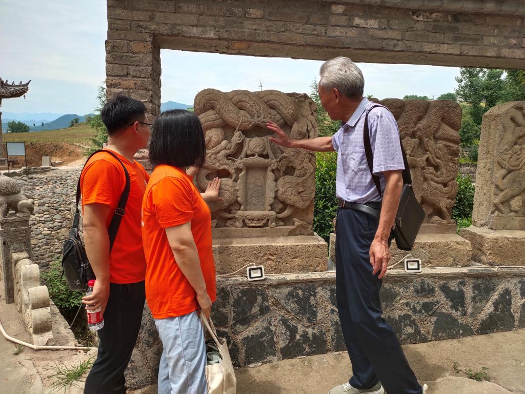辗转流亡寄乡庙,烽火连天保安宁。团队成员踏着露水来到这里,一股浓厚的历史气息迎面而来。成排的房屋,是曾经的教室;灰砖白墙,是教育的辉煌;断壁残垣,也是过往的耻辱。饱经沧桑又充满红色历史的古村落,在青山环抱之中,默默承载着河南大学与潭头镇人民肝胆相照,守望相助的历史。河南大学选择了潭头,而潭头亦选择了河南大学。辗转千里,河南大学文、理、农三个学院设在了大王庙村。大王庙的百姓腾房让舍,为河大师生提供食宿,教学及办公帮助,给予河大莫大的支持。团队成员抚摸曾经的雕花石柱,仿佛听见百年间的风霜雨雪。