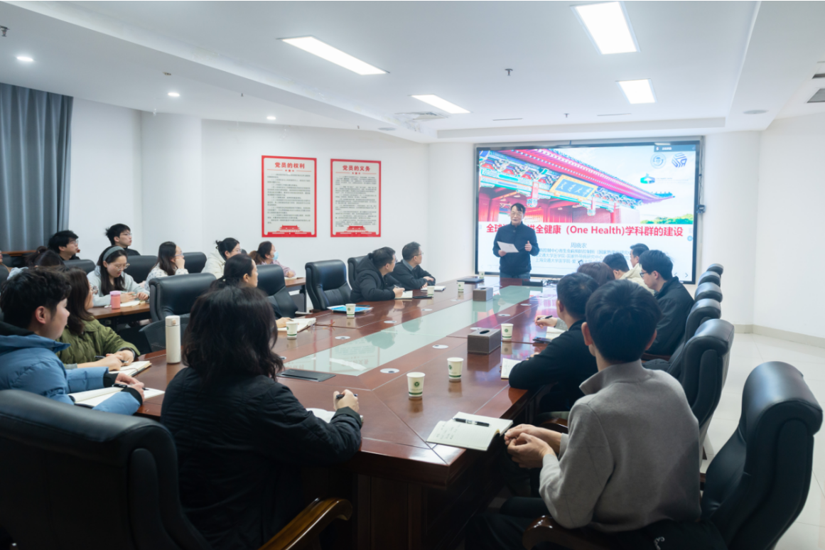 报告会上,周晓农系统介绍了“全健康”理念的时代背景与演进历程,梳理了从2003年首次提出到2021年四方组织联合定义的内涵迭代,阐释了其“人类-动物-生态环境健康三位一体”的核心逻辑,并以我国控制血吸虫病等人兽共患病的成功案例阐述了我国开展“全健康”理念与实践研究所取得的显著成效。他结合人类文明发展脉络,分析了全球化、城市化背景下新发传染病、抗生素耐药性等全球性健康挑战,指出“全健康”是应对复杂公共卫生问题的系统性方案。