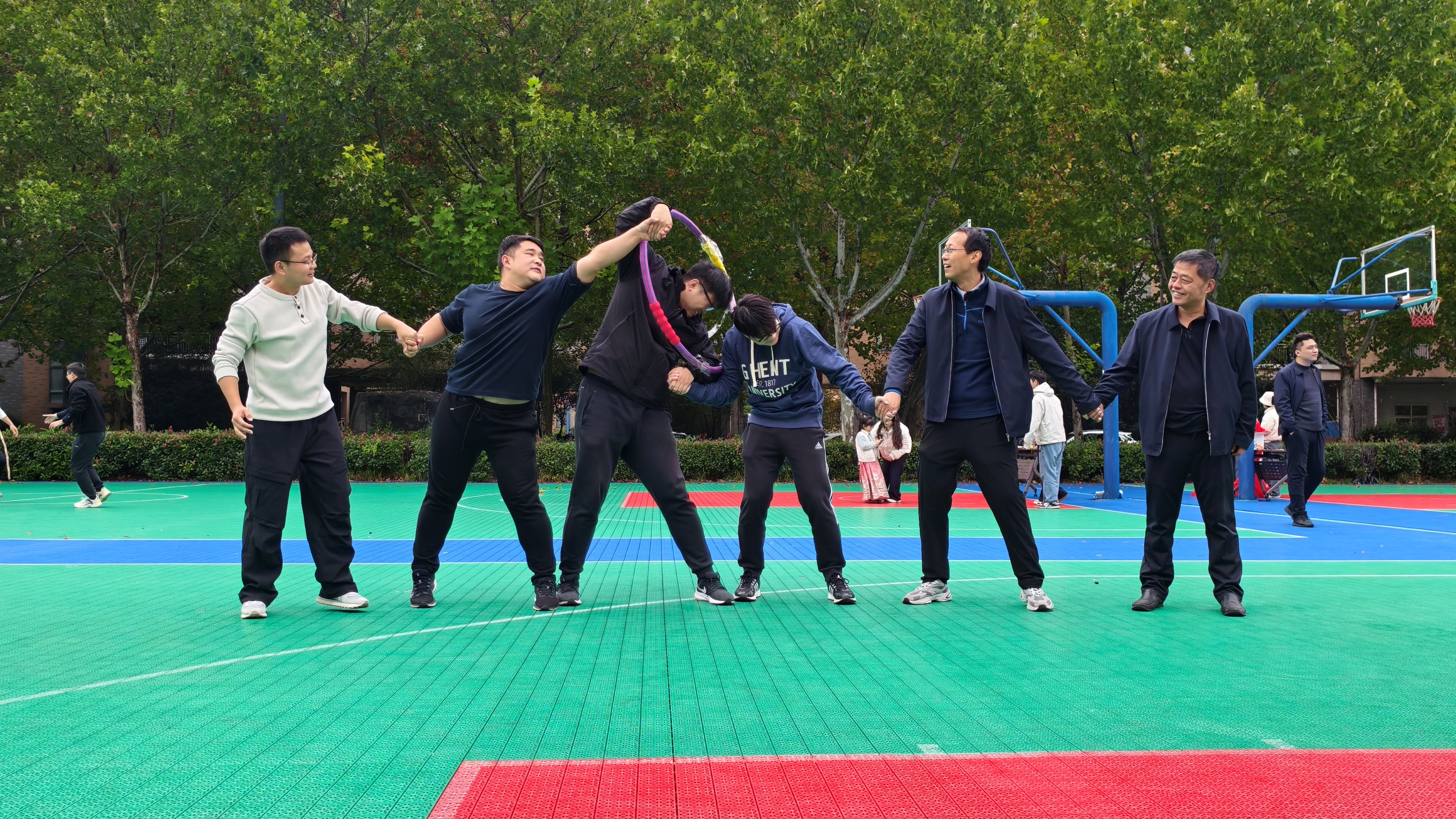 本次运动会延续传统,设置男子、女子个人项目及团体项目三大类别。个人项目按年龄分组竞技,既有考验精准度的定点投篮、沙包投掷,也有挑战平衡与稳定的乒乓球平衡赛、小型保龄球;既有展现技巧的套圈活动,也有比拼速度与耐力的30秒跳绳、踢毽子比赛。赛场上,平日严谨治学的教师们化身活力四射的运动员,或凝神瞄准,或健步如飞,现场掌声、笑声、喝彩声此起彼伏。