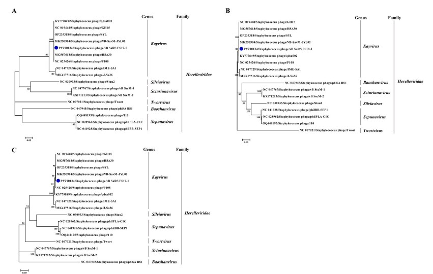 图5 噬菌体vB_SaRS_FS19-1的遗传进化分析