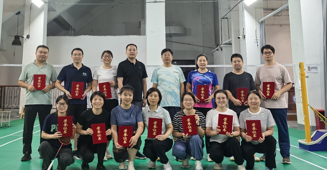 随后,男双、女双和混双三个项目依次展开。赛场上,队员们步伐敏捷、配合默契,高远球划出优美弧线,网前吊球精准轻巧,有力扣杀频频得分。赛场边,观众的喝彩与掌声此起彼伏,一次次将比赛推向高潮。经过多轮激烈角逐,各项比赛的优胜者相继产生。比赛结束后,杜家方书记与魏战勇院长共同为获奖选手颁发荣誉证书并合影留念,现场气氛热烈融洽。