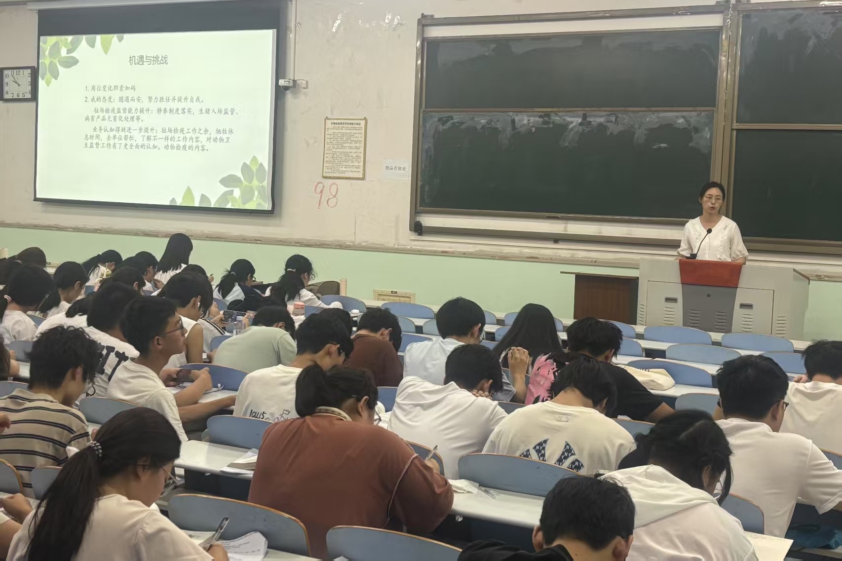 邀请知名校友和小娥做客“校友大讲堂”,为24级动物医学专业学生作《敬业奉献 勇攀高峰 争做一流农大人》的行业认知报告。报告由学院党政办公室陈宇老师主持。