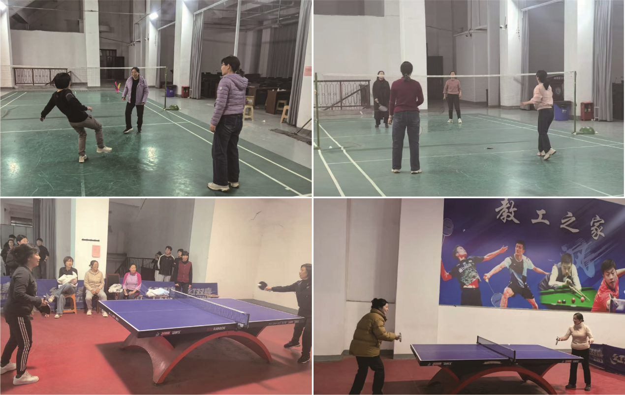 活动现场气氛热烈,分设“毽舞飞扬”“乒搏奋进”“羽你同行”三大板块。踢毽子的教师们身姿轻盈,五彩毽子在空中划出优美弧线;乒乓球台前,选手们攻守有度,精湛球技引发阵阵喝彩;羽毛球场上,高远球、扣杀等精彩瞬间频现,展现出女教师课堂之外的飒爽风采。活动还穿插趣味挑战赛、团队接力等环节,掌声、笑声、欢呼声此起彼伏,充分彰显了新时代女性健康向上、团结协作的精神风貌。“平时忙于教学科研,今天和同事们一起挥洒汗水,既锻炼了身体又增进了感情,特别有意义!”参与活动的孙老师表示。