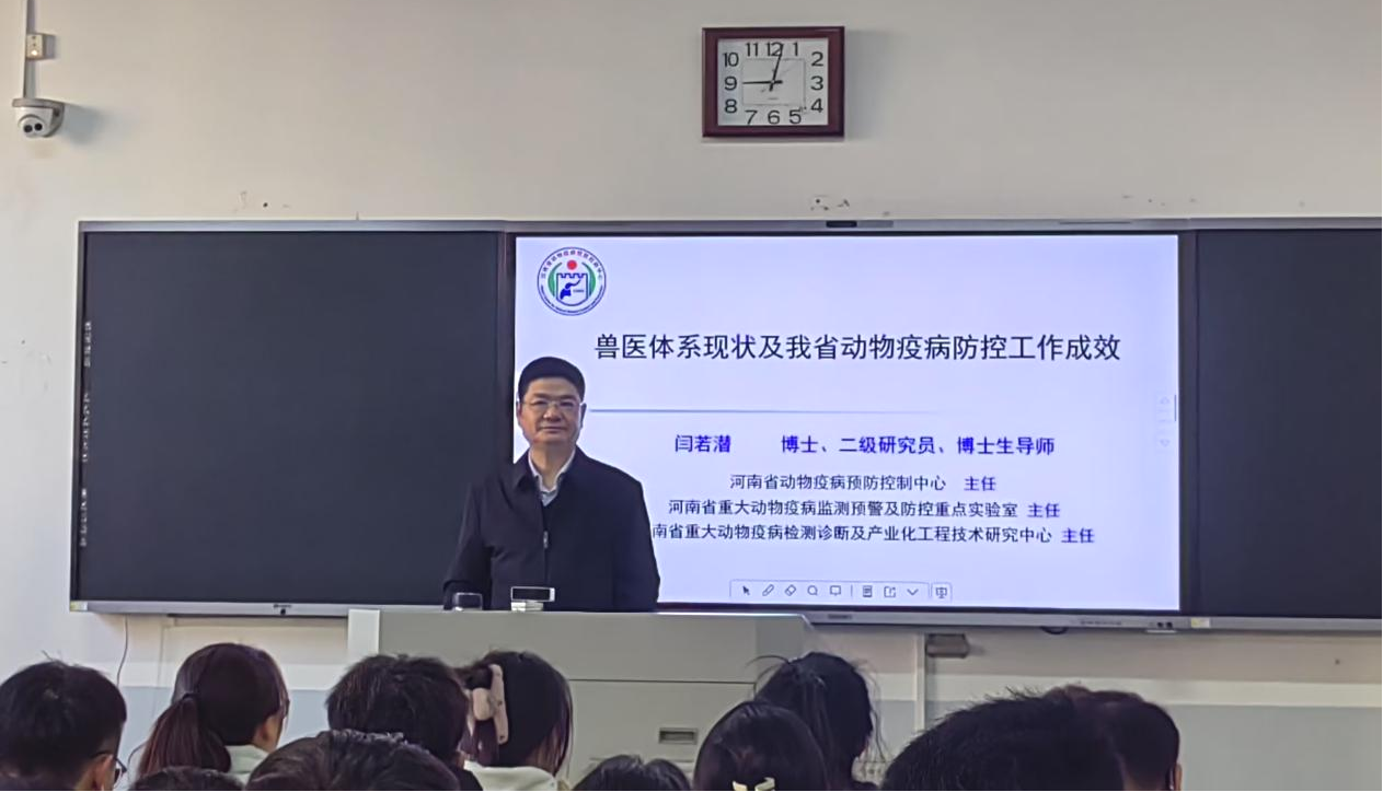院长张龙现邀请,河南省动物疫病预防控制中心主任闫若潜研究员,在教学楼D205以《兽医体系现状及我省动物疫病防控工作成效》为题为酷爱成人网