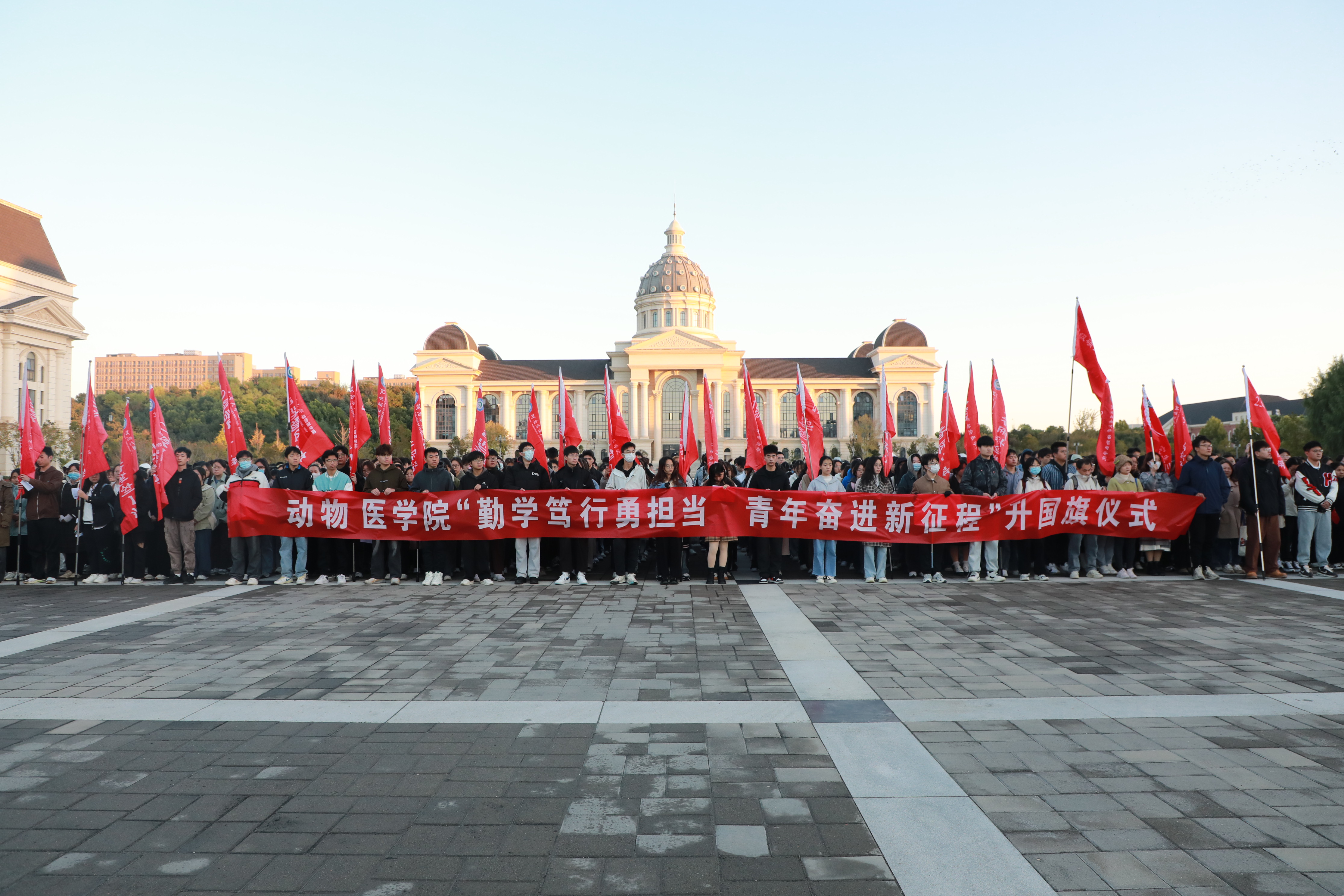 于龙子湖校区中心广场举行升旗仪式。学院领导班子成员和团委老师出席活动,青马班全体同学、2021级、2022级本科生、2023级研究生参加升旗仪式。升旗仪式由院党委副书记杜家方主持。