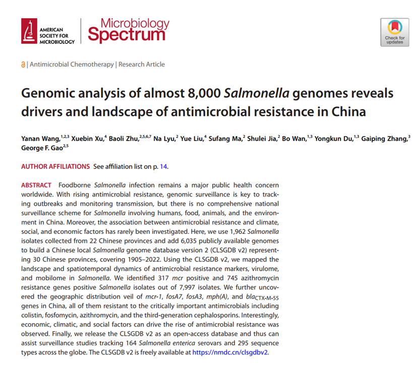 Salmonella genomes reveals drivers and landscape of antimicrobial resistance in China. Microbiology Spectrum. 2023; DOI: //doi.org/10.1128/spectrum.02080-23.