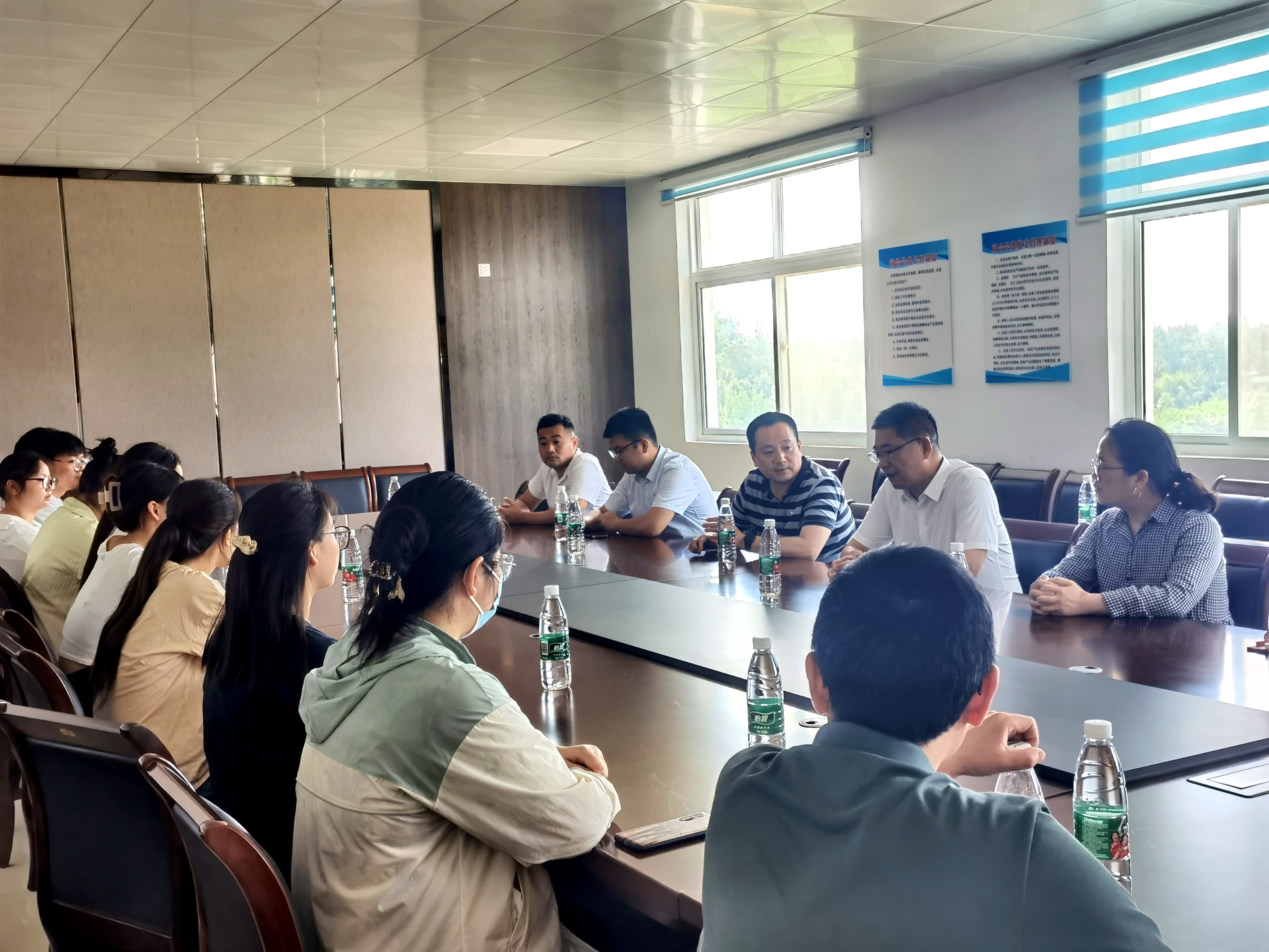 河南盛世联邦生物医药科技有限公司总裁王辉驰、技术总监于东鑫等对老师们的到来表示热烈欢迎,并对此届实习生给出了极大的肯定和认可。同时公司表明愿意出资培养更多高学历高技能的在职员工,欢迎学生们毕业后能到公司工作,也期待今后的校企合作能得到进一步加强。