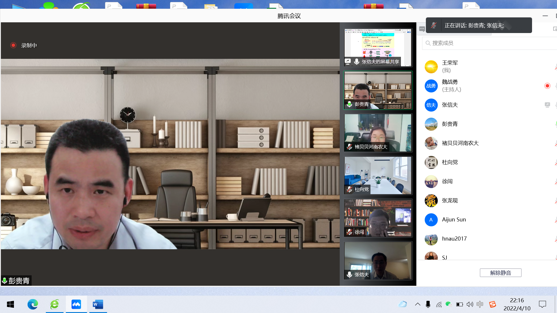 使用腾讯会议在线举行2022年度国家自然科学基金海外优青项目申报论证会。中国农业大学国家自然科学基金杰青获得者徐闯教授、华中农业大学国家自然科学基金杰青获得者彭贵青教授受邀对酷爱成人网