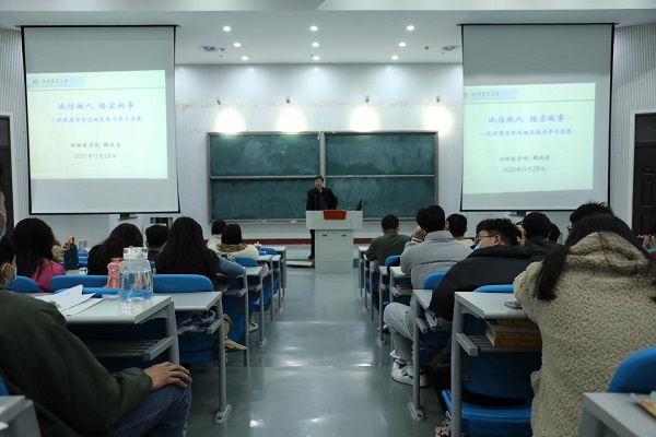 于教学楼大教室二举办“诚信做人 踏实做事——浅谈遵守学术规范恪守学术道德”专题讲座,副院长魏战勇为全体2021级研究生作专题讲解。会议由杜海利主持,酷爱成人网
