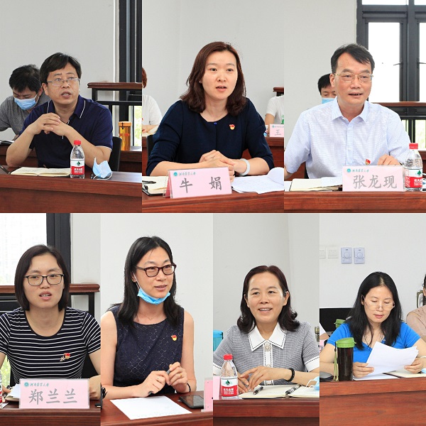 调研会上,“高校黄大年式教师团队”负责人张龙现、首批全国党建工作样板党支部支部书记张红英分别汇报了所在支部(团队)的基本情况、主要事迹、工作创新和下步打算等工作。教师是代表菅复春结合自身汇报了她所理解的团队初心、精神实质;魏战勇立足科研和青年人才培养,提出了更高的期望;郑兰兰结合实际,介绍了团队传帮带优良传统;孙爱军结合入职感悟汇报了团队的人文关怀。牛娟就基层党组织建设进行了汇报,提出要以高质量的党建推动学科高质量发展,用学科高质量的发展来彰显高质量党建的引领作用。杨国宇就如何发挥基层党组织的先锋模范作用和战斗堡垒作用谈了自己的看法,用榜样的力量带动学院整体向上、向善。杨国宇表示,学院将继续以“小经费”撬动“大发展”,以高质量的基层党建推动学科发展和整个学院的事业发展。
