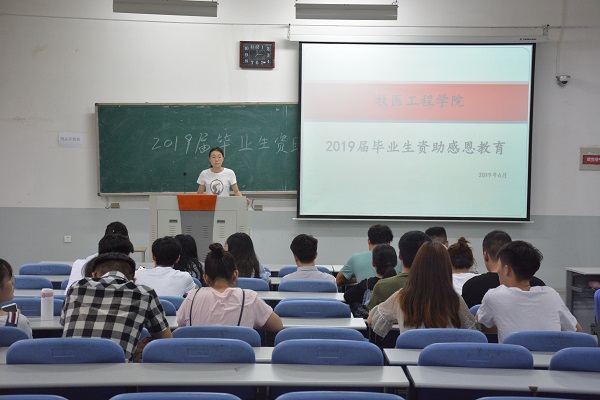 于龙子湖校区繁塔楼C208教室集中开展2019届毕业生资助感恩教育。团委副书记韩笑与2019届获资助学生代表一同参与活动。