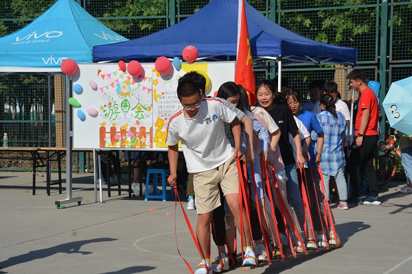 负责开展,该环节需要通过每位成员的配合,才能保证球不掉落到地上,不仅提高了学生们的默契度,更增强了团队的凝聚力。活动现场异常火热,其他环节的活动也各具特色,趣味良多。