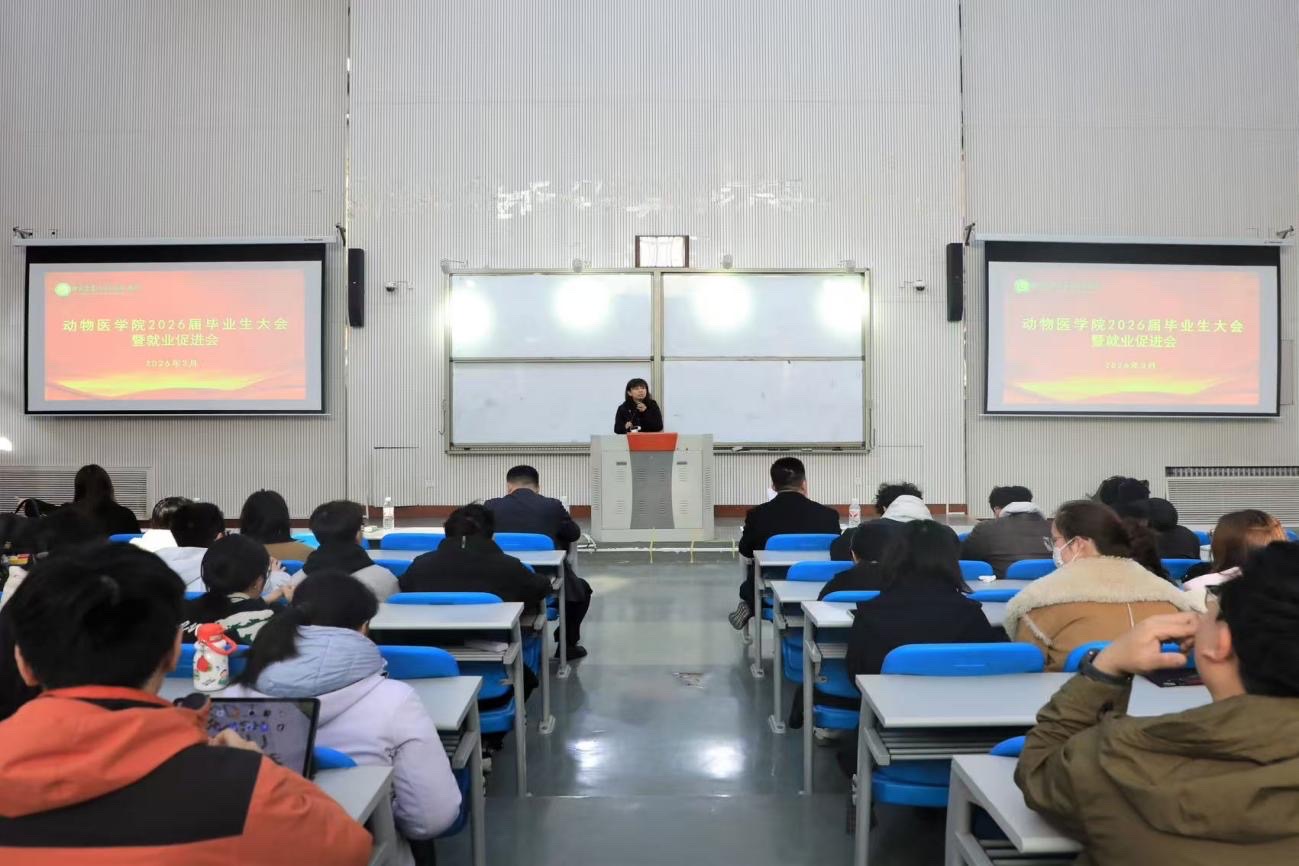 2026届本科毕业生大会暨就业促进会在龙子湖路校区召开。院党委副书记杜家方、副院长韩立强、国免中心副主任李永涛、院团委书记张心晨、正科级组织员冯佟、正科级辅导员毋亚运出席会议,2026届全体本科毕业生参加大会。会议由院团委书记张心晨主持。