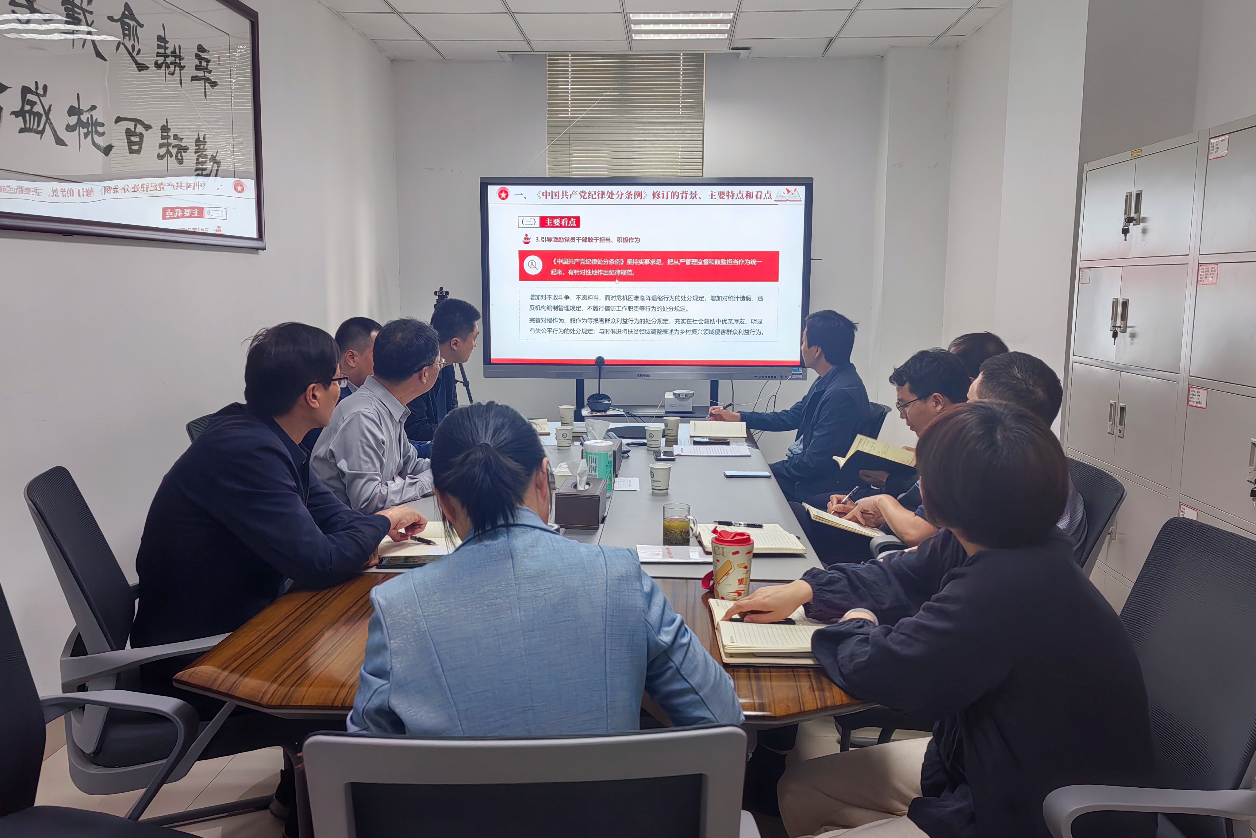 党委书记廖仲磊领学了《中国共产党纪律处分条例》条文对照表。领导班子成员还以个人自学的方式通读精读《中国共产党纪律处分条例》,并结合思想和工作实际进行集体研讨,逐一交流学习体会。