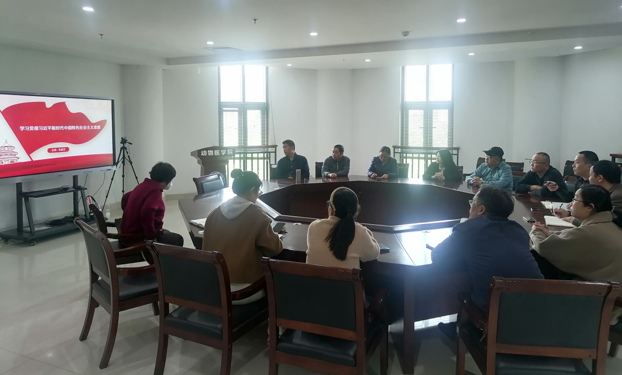 5月23日下午,动物生物技术系党支部及所在系教师在第一实验楼北401会议室举行学习贯彻习近平新时代中国特色社会主义思想主题教育宣讲会。